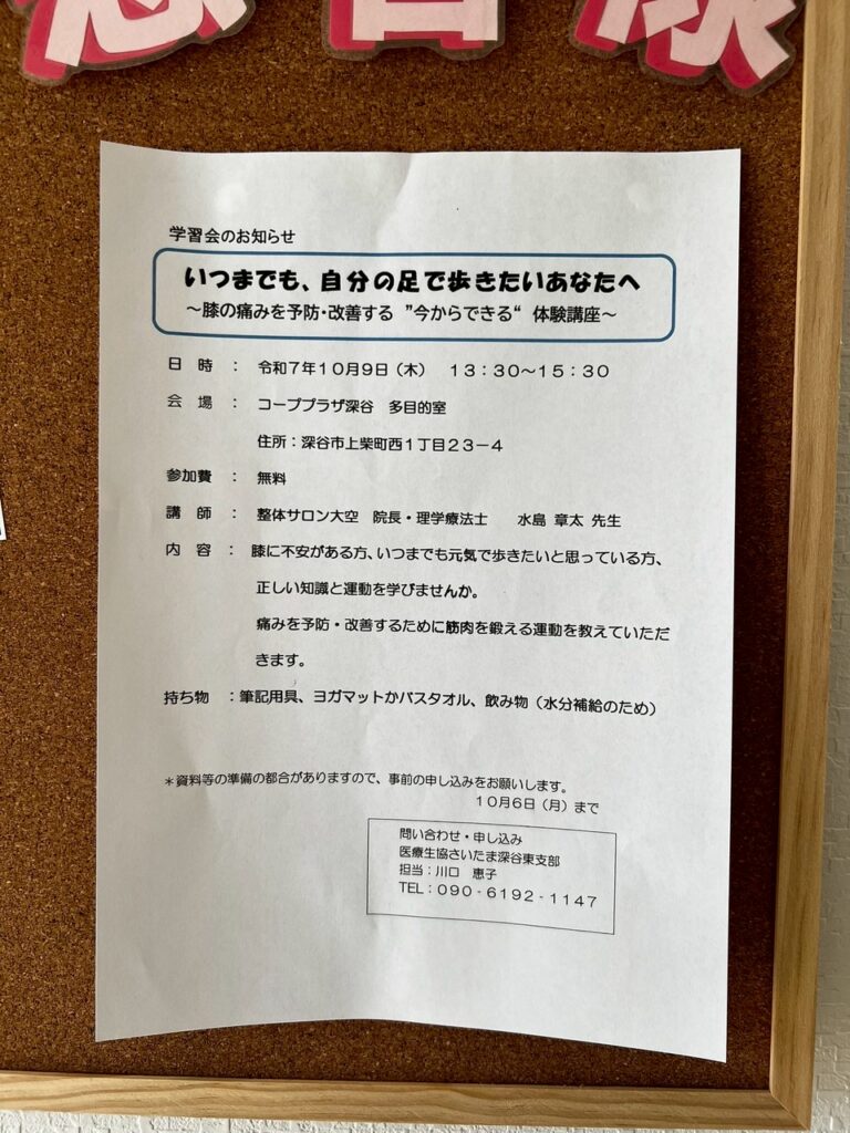 という組合からまた依頼がありまして、今週の木曜日に膝の痛みに対する学習会をやらせていただきます