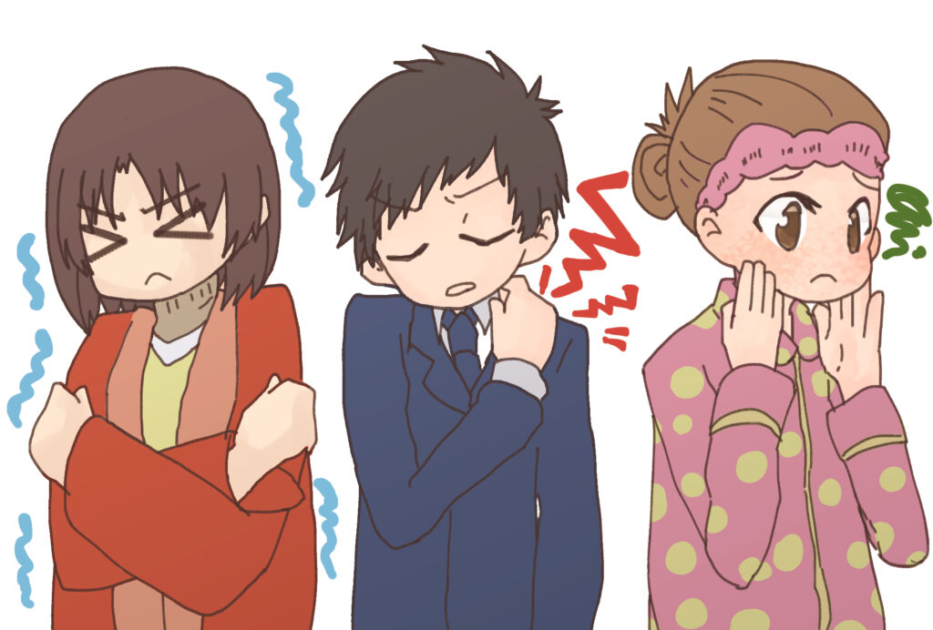 寒さで血管が収縮すると、体は、無意識に“守りの姿勢“を取ります。